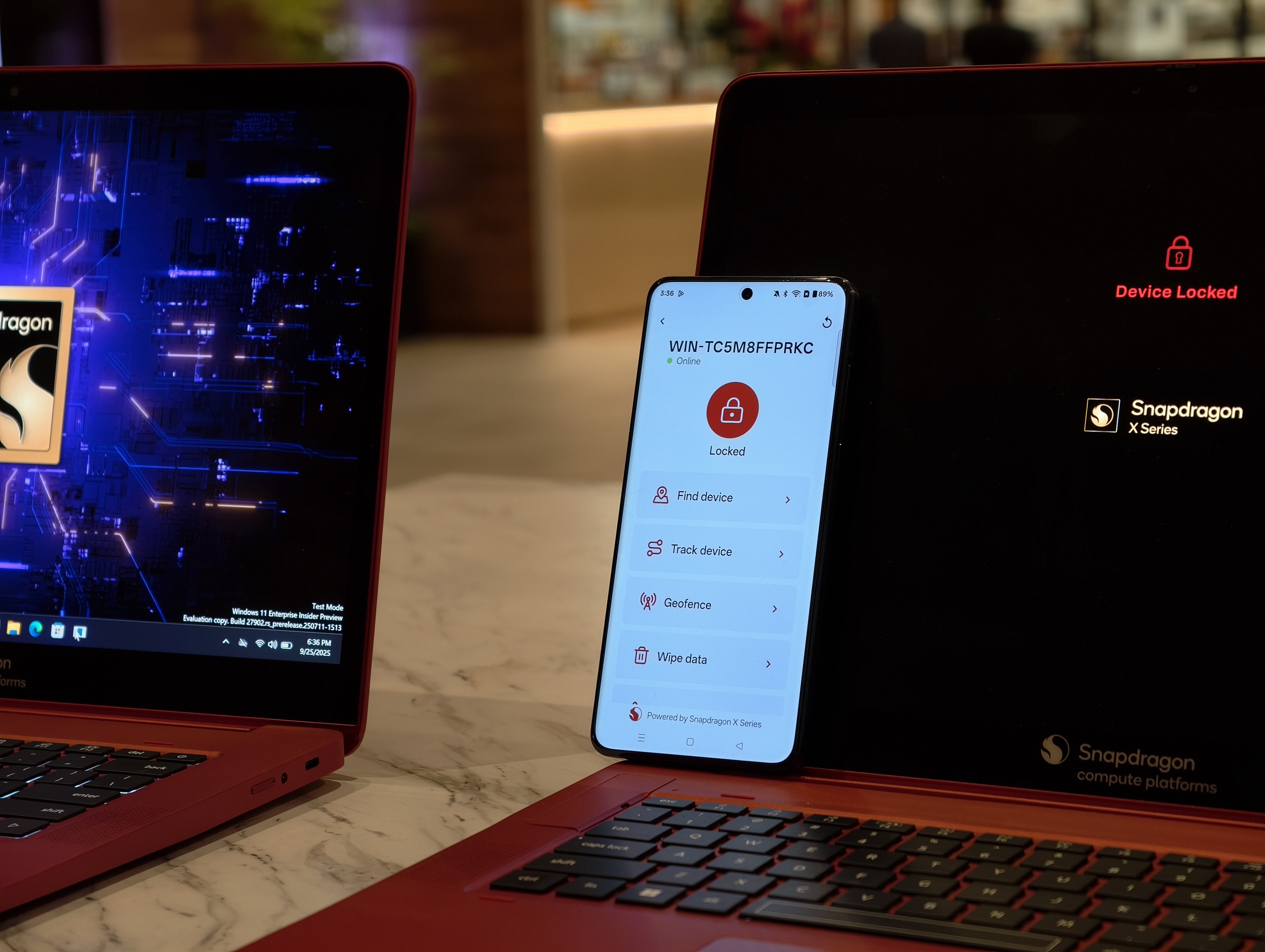 不过最让雷科技感兴趣的,还是这套基于骁龙芯片打造的「防盗系统」,它的操作跟苹果上的「查找」功能有些相似,都是通过用户的某款智能终端设备查看其他设备的位置和状态,如果遇到特殊情况就能远程对设备进行锁定。例如笔记本电脑在国外被偷了,就能通过手机对电脑进行远程锁定,哪怕笔记本没电关机了,只要插上电源接入外部的网络,就会继续处于锁定的状态,小偷除了拆成零件卖钱外,没有任何办法。